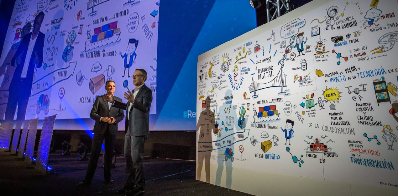 las ideas de tu discurso, y las plasmamos en dibujos en tiempo real.