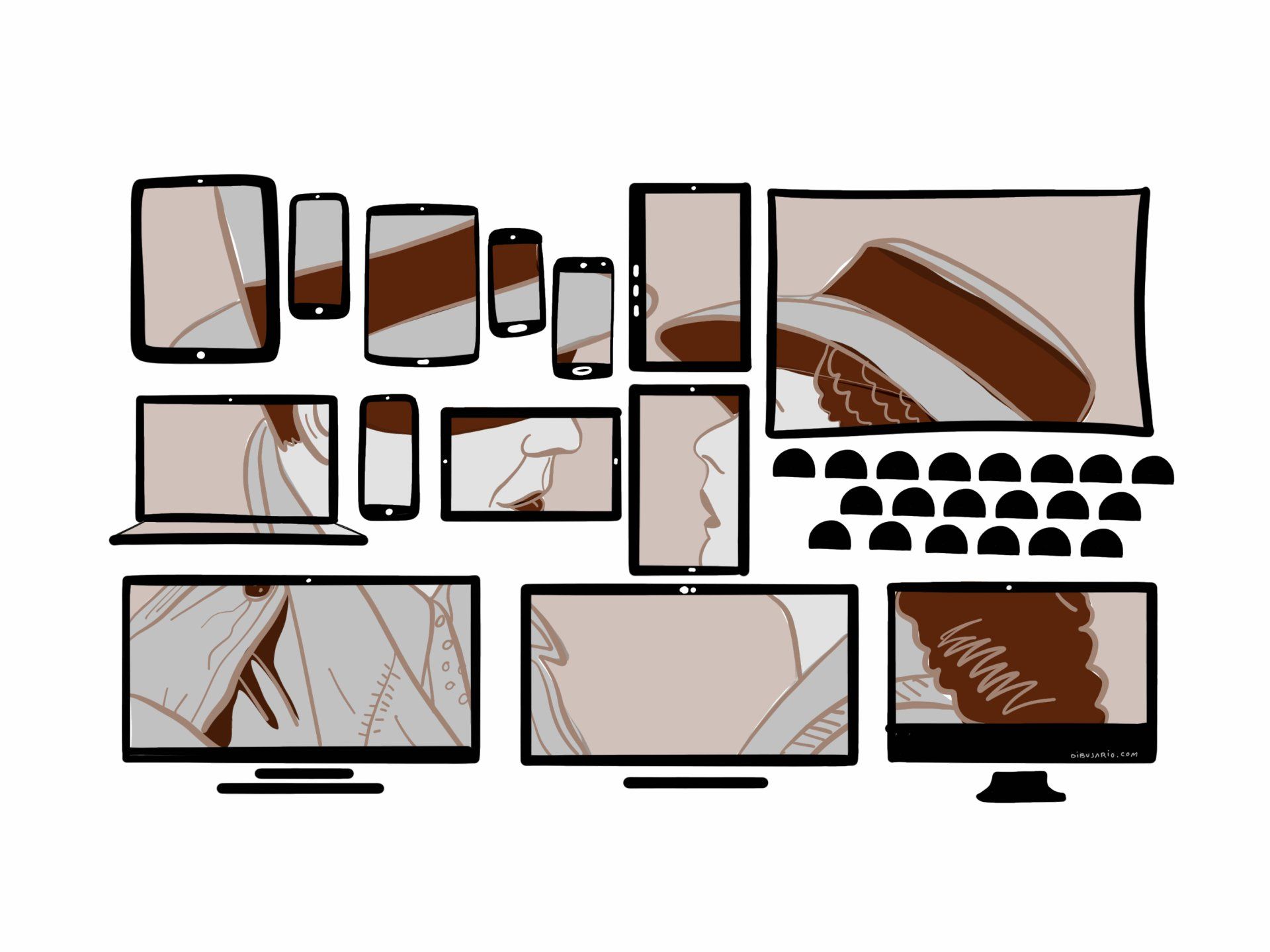 Hace más de 10 que dibujamos en directo. Desde entonces han ido apareciendo una gran cantidad de materiales y técnicas nuevas que hemos incorporado en nuestra labor de facilitadores visuales . Al principio empezamos realizando apuntes en hojas de papel de mediano tamaño, con lápices y rotuladores profesionales de secado rápido que permiten mezclar distintas tintas de forma suave y uniforme. Destacamos los Neuland como los primeros rotuladores especialmente diseñados para el graphic recording. No tardamos en dar el paso a formatos más grandes y empezamos a dibujar sobre murales de cartón pluma. Con el aumento en los dibujos y en los textos el calibre de los rotuladores tuvo que adaptarse. Inicialmente tenían entre uno y tres centímetros de grosor, pero progresó hasta siete, casi más una brocha que un rotulador. Los paneles más grandes incentivaron las retransmisiones en directo, proyectando en pantalla todo aquello que dibujábamos. Poco a poco cobrábamos más relevancia en las reuniones y la experiencia de los eventos se enriquecía con ello. Pronto vino una gran revolución: las tablet , y con ellas los lápices stylus . Inicialmente eran de punta de burbuja de goma, pero más adelante aparecieron los Ipen o Surface pen , instrumentos cada vez más precisos y orientados al software de dibujo. En los primeros tiempos esta tecnología tenía un incómodo retardo (conocido como “latencia del trazado”) que afortunadamente ya se ha superado. El trabajo con soporte digital tiene muchas ventajas: permite correcciones inmediatas, aplicar el color mediante paletas infinitas o ampliar un espacio de trabajo cuando necesitas ser más preciso. Por otra parte, las tablet han hecho posible dibujar en remoto durante los periodos de distancia social y han sido las grandes protagonistas de los eventos online por la conectividad y adecuación a las plataformas de video-llamada. Gracias a estos dispositivos podemos ilustrar conferencias desde el otro lado del globo y la distancia no es un inconveniente para trabajar en equipo. Hoy en día los facilitadores visuales podemos disfrutar de hardware más sofisticado con pantallas cada vez más grandes, como el modelo de Microsoft Surface Hub 2S de 50” o de 85” que hemos podido probar recientemente en uno de nuestros eventos. Sus dimensiones permiten el lucimiento del acto de dibujar en directo sobre un escenario y su conectividad digital lo convierte en una solución perfecta para eventos híbridos o bimodales. Nuestra inquietud por conocer todo tipo de herramientas para el dibujo nos ha dado la oportunidad de probar sistemas virtuales como Oculus , el Graffiti de luz de Cubensis y otras aplicaciones de técnica combinada como Mural Maker by DaVinci Eye , entre otras. Estamos convencidos que en un futuro próximo el Metaverso contará sin duda con interfaces y medios de producción y creación visual muy avanzados. La evolución de las técnicas relacionadas con el graphic recording va a continuar en estos entornos en los que será necesario generar contenidos visuales de un modo inmediato. La tecnología crece imparable a nuestro alrededor y sin duda ofrece herramientas muy interesantes. Desde Dibujario recomendamos caminar entre todos estos mundos : analógico, digital, real y virtual. El verdadero potencial está en ser lo más versátil posible y tener capacidad de adaptación. Como decía un buen maestro: “ Dibuja siempre, dibuja con lo que sea ”.