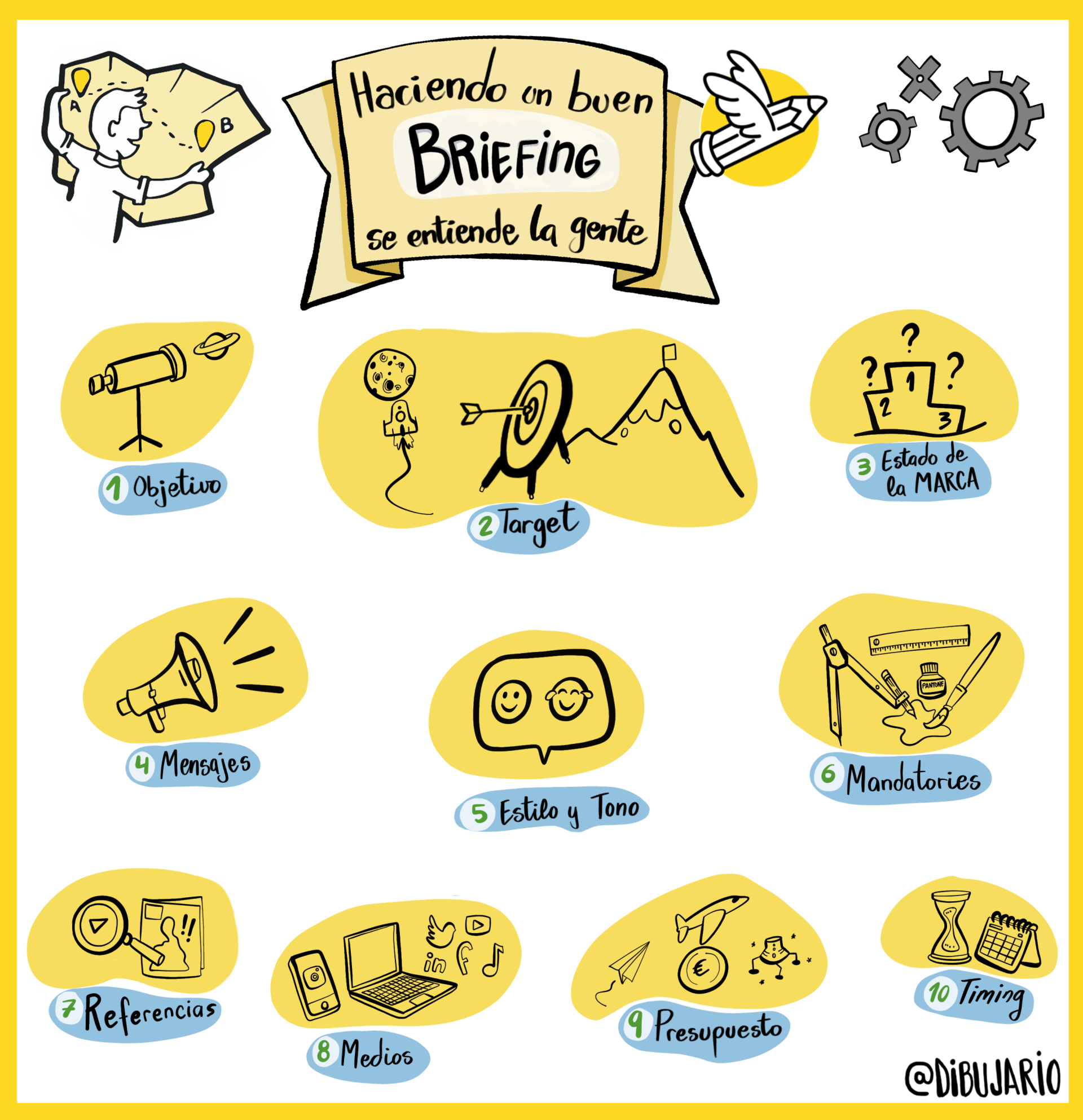 El briefing es clave para el éxito de un proyecto. Proporciona información concreta del contexto, define sus objetivos, y permite al creativo comprender lo que el cliente necesita. Si quieres llevar a buen puerto tu próximo proyecto, no lo dudes: invierte tiempo en el briefing. Te ayudará a clarificar tus propias ideas y a establecer una comunicación eficaz con tu agencia. No existe un modelo único, pero en líneas generales hay una serie de conceptos que todo briefing debería incluir.