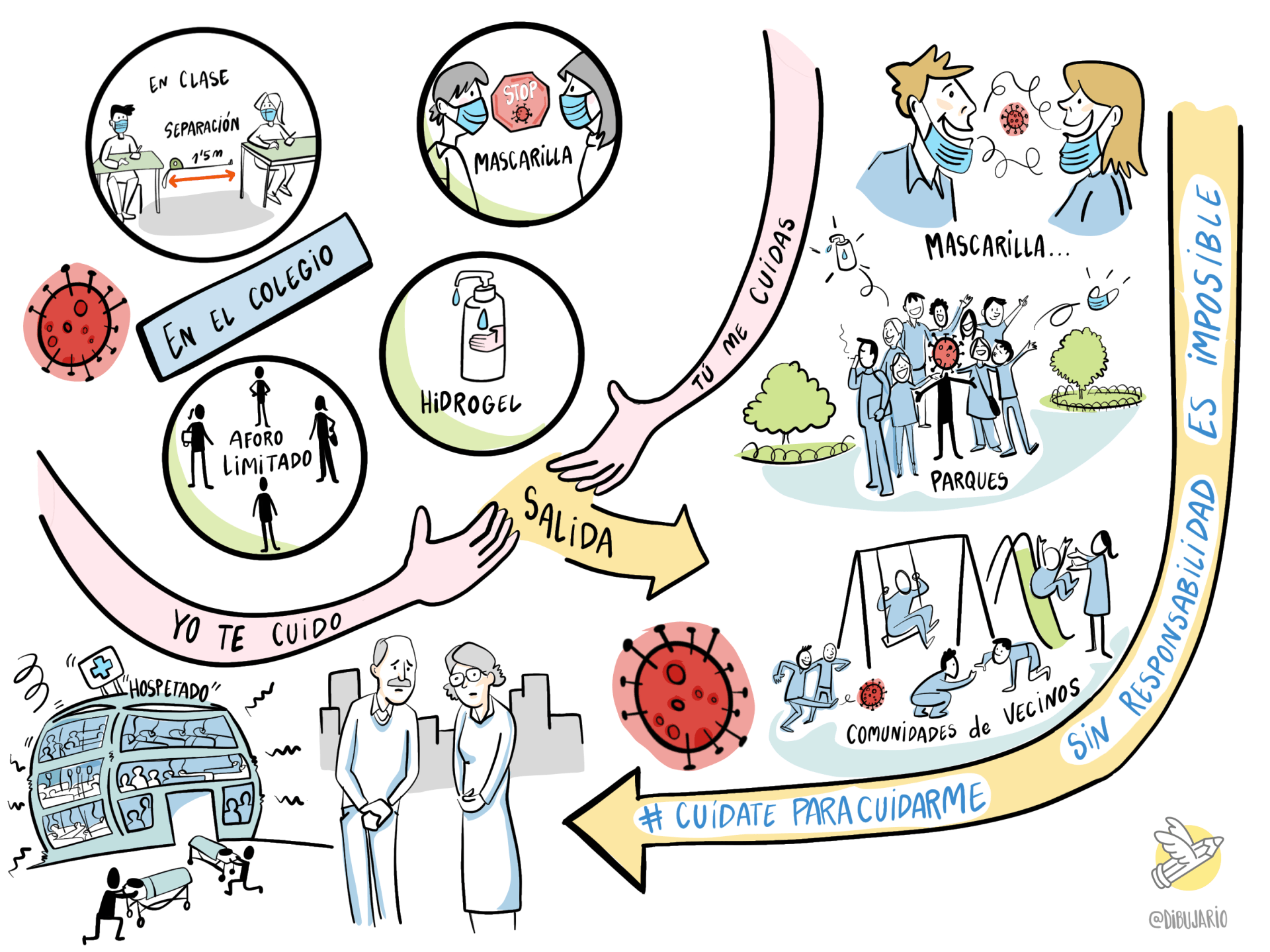 Nos consta, por la cercanía que tenemos con el sector educativo, el esfuerzo ímprobo que se está realizando para poner en marcha el nuevo curso. Estamos convencidos de que este año, más que ningún otro, lo sacamos juntos trabajando todos a una. Pero para conseguirlo, es necesario el compromiso de toda la Sociedad: dentro y fuera de las aulas “yo te cuido; tú me cuidas”. Sin la responsabilidad de todos (instituciones, profesores, padres y por supuesto alumnos), es imposible.